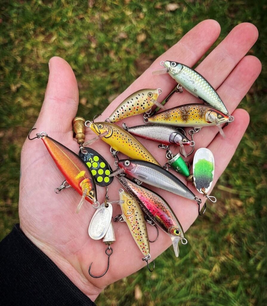 > Small silver or copper spinners – Mepps or Blue Fox are good brands, Size 0 / 1 / 2