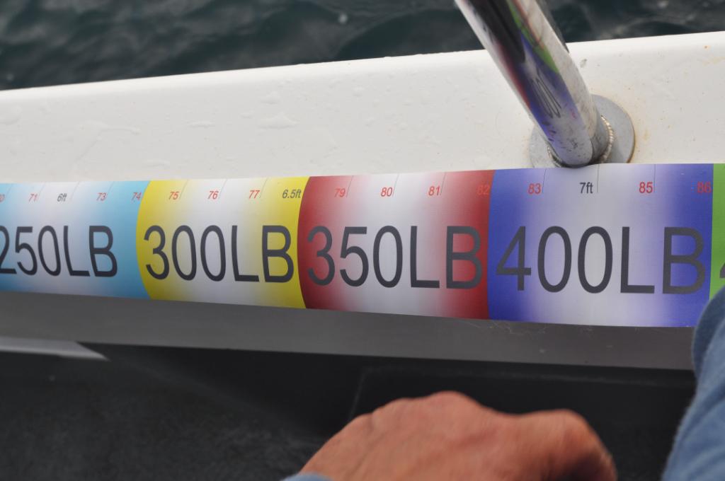 Fish in excess of 500lb are encountered frequently, and fish estimated at weighing well over 800lb and possibly even 1000lb have been hooked and released off the Welsh coast. This is strictly a catch and release fishery, all tuna must be released. No tuna are allowed to be boated. An estimate of a fish’s weight is taken from measurements against a weight to length scale provided to licenced boats.