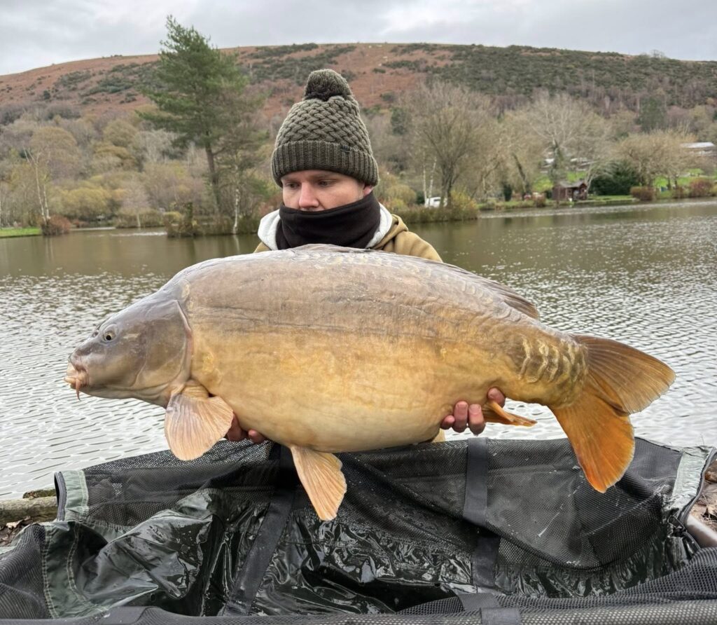 Below, a potential new Welsh record 50lb 6oz mirror called ‘Colls’ from Llyn Cae-Tŷ-Nant caught by Natalie May in November 2025. It should be noted that the venue will be closed for maintenance next year.